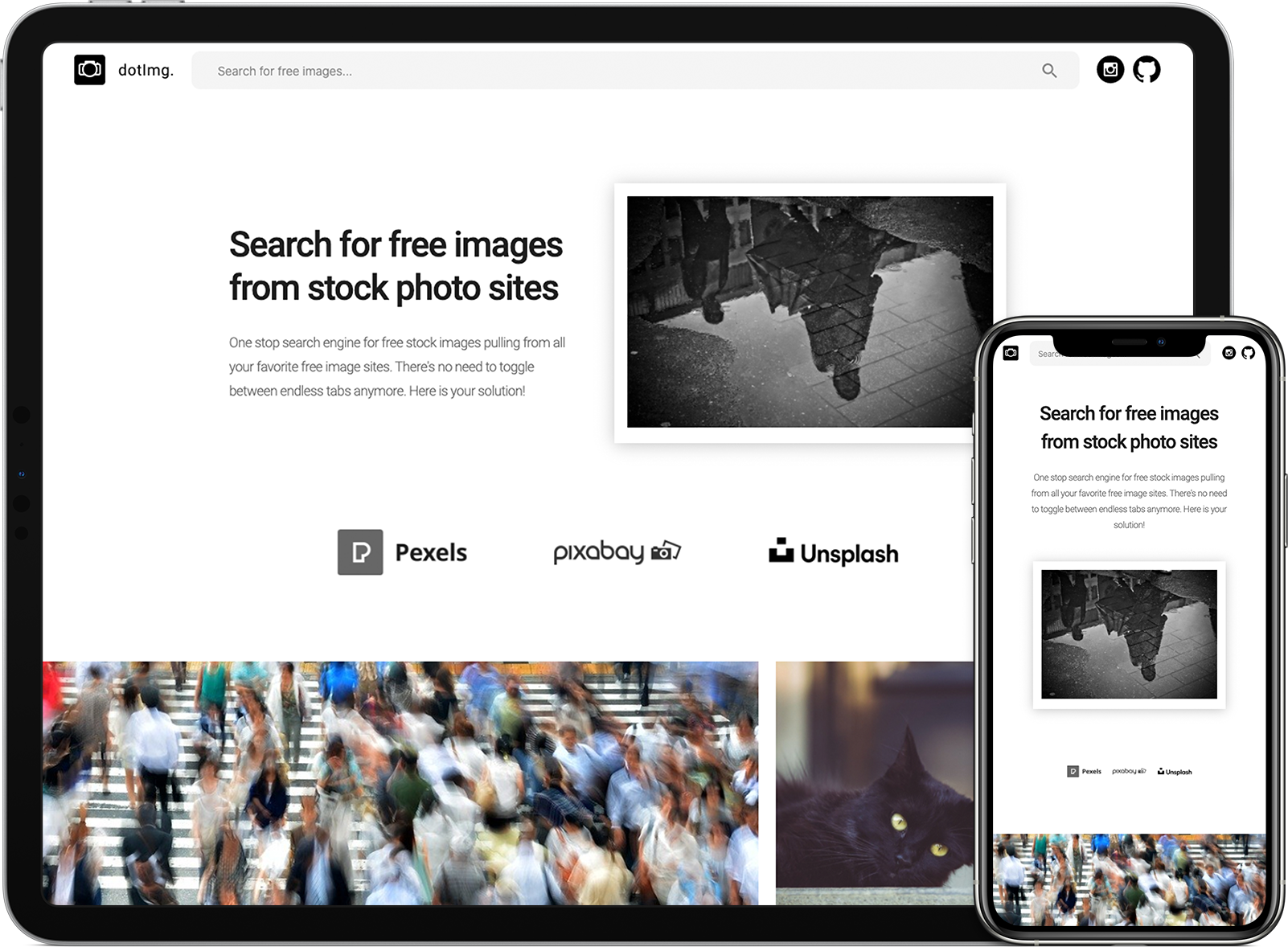 A search engine that displays the user's search value as images from the 3 top free image hosting sites.