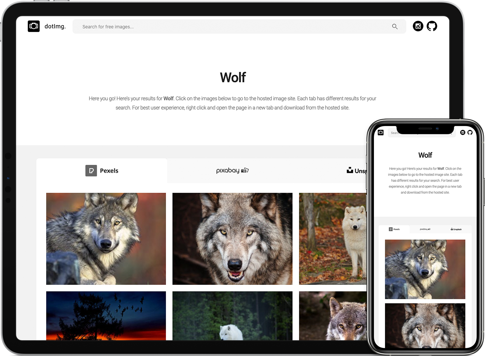 Although there are many free stock photo sites, 3 of them are the most reliable for high quality and robust amount of content. I used Pexels, Pixabay, and Unsplash APIs and connected them to populate the user's search.