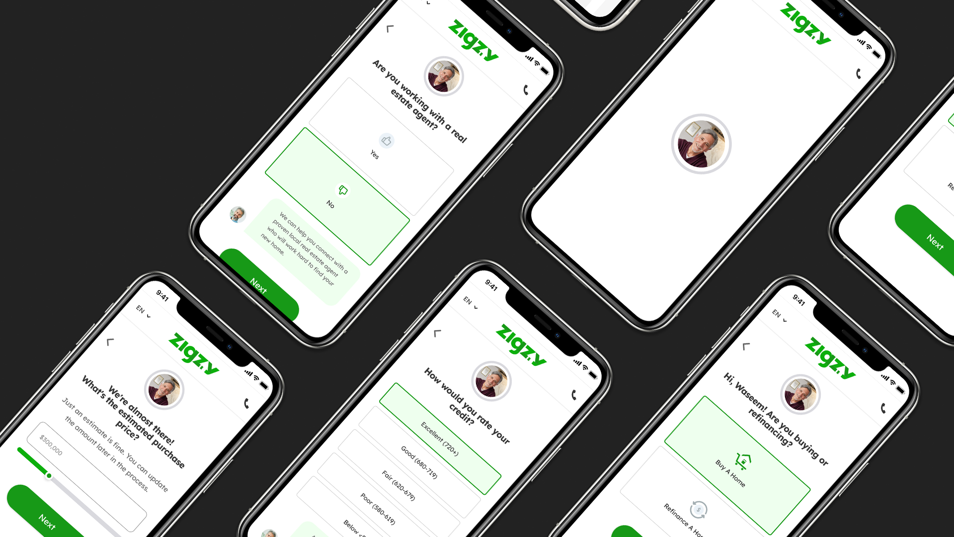 Zigzy's mascot, "Rich Uncle Zigzy" was really put to use in these forms. I wanted to convey the feeling of a conversation throughout the lead gen process. Every question was made to feel like a one on one between the user and "Uncle Zigzy". The largest drop off in New American Funding's forms was the name question. For Zigzy, I unconventionally placed the personal question at the beginning of the form to make it seem like the start of a conversation. "Hey! Uncle Zigzy, here! I'm here to help you out! So...Who am I speaking to?"